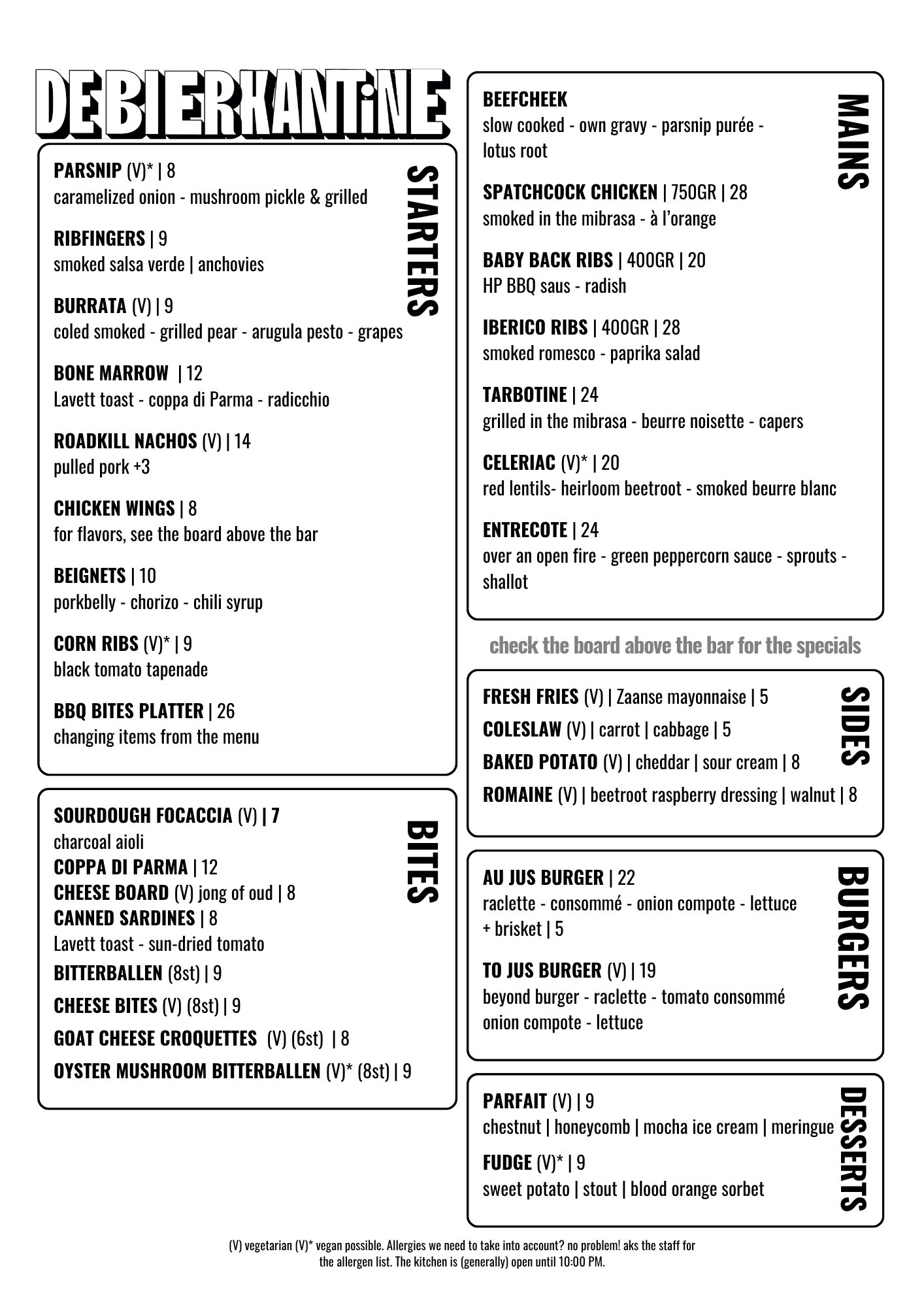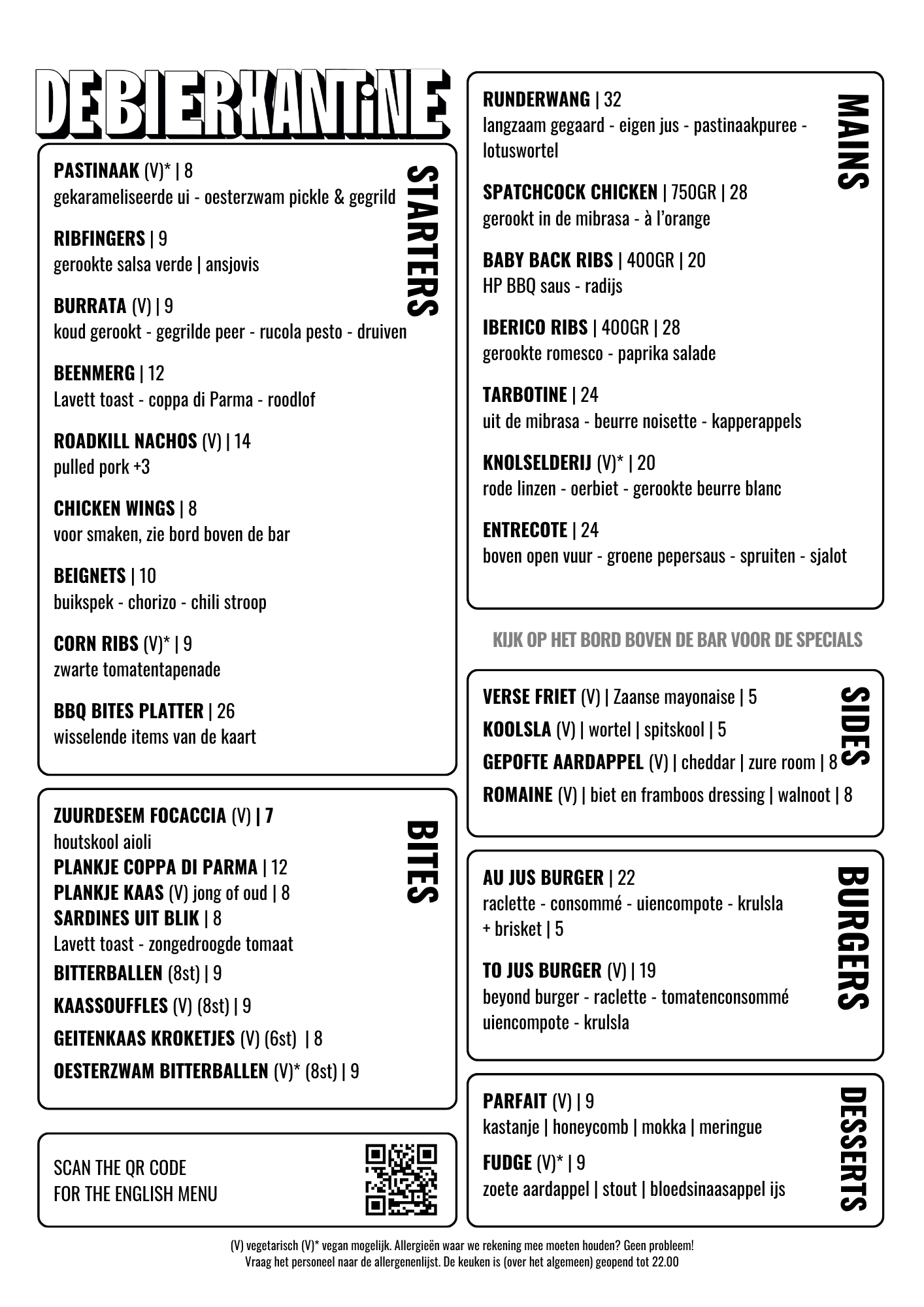Of je nu binnenkomt voor een fantastisch glas bier aan de bar, een goeie borrel met vrienden met een tafel vol snacks, of schitterende stukken Double Dutch rund komt eten, wij bezorgen je een fantastische avond!